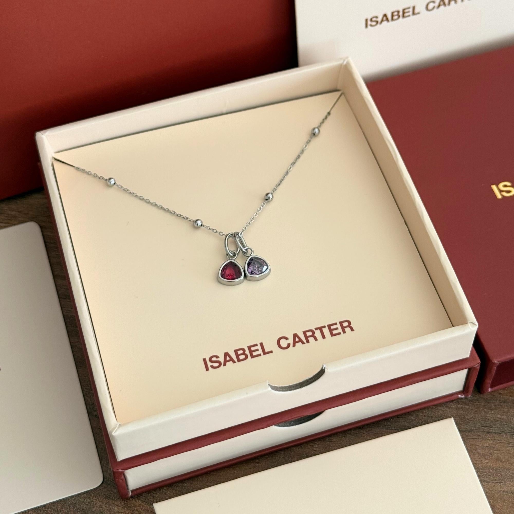 Enjoy an extra 50% off your second jewellery piece when you buy the Double Birthstone Pendant Necklace (Silver).