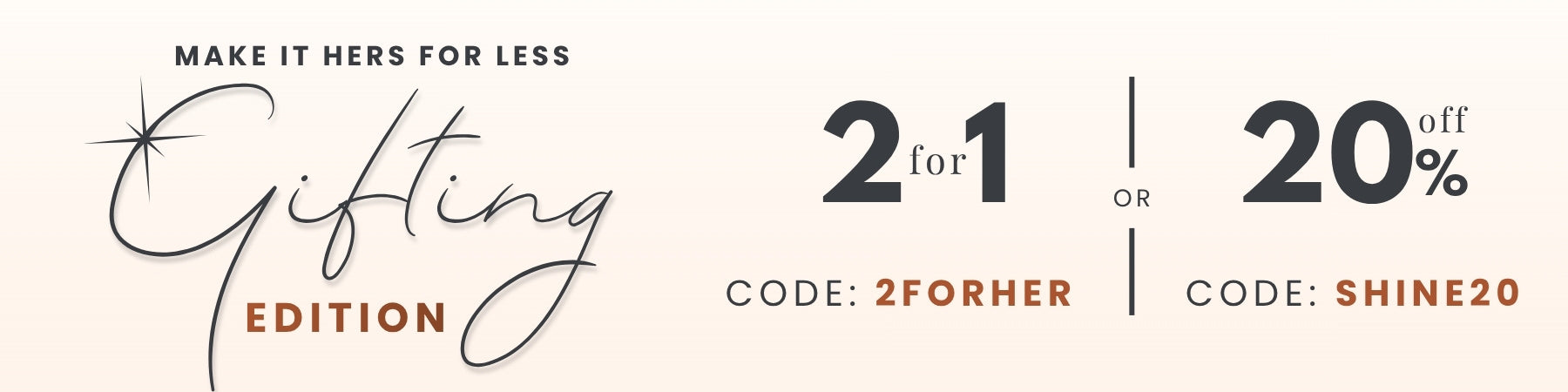 SHOP 2 FOR 1 SITEWIDE WITH CODE: "2FORHER" OR 20% OFF WITH CODE: "SHINE20"