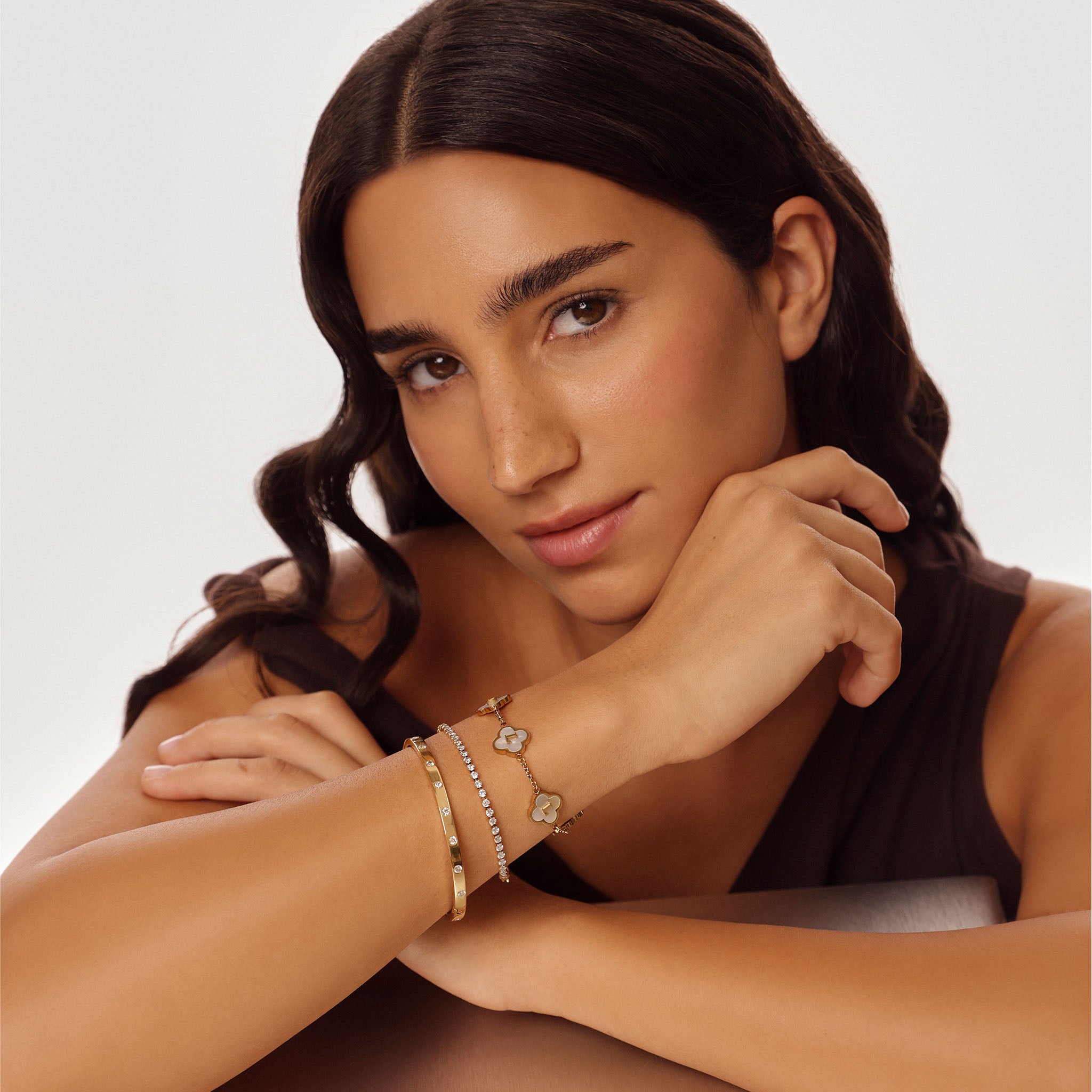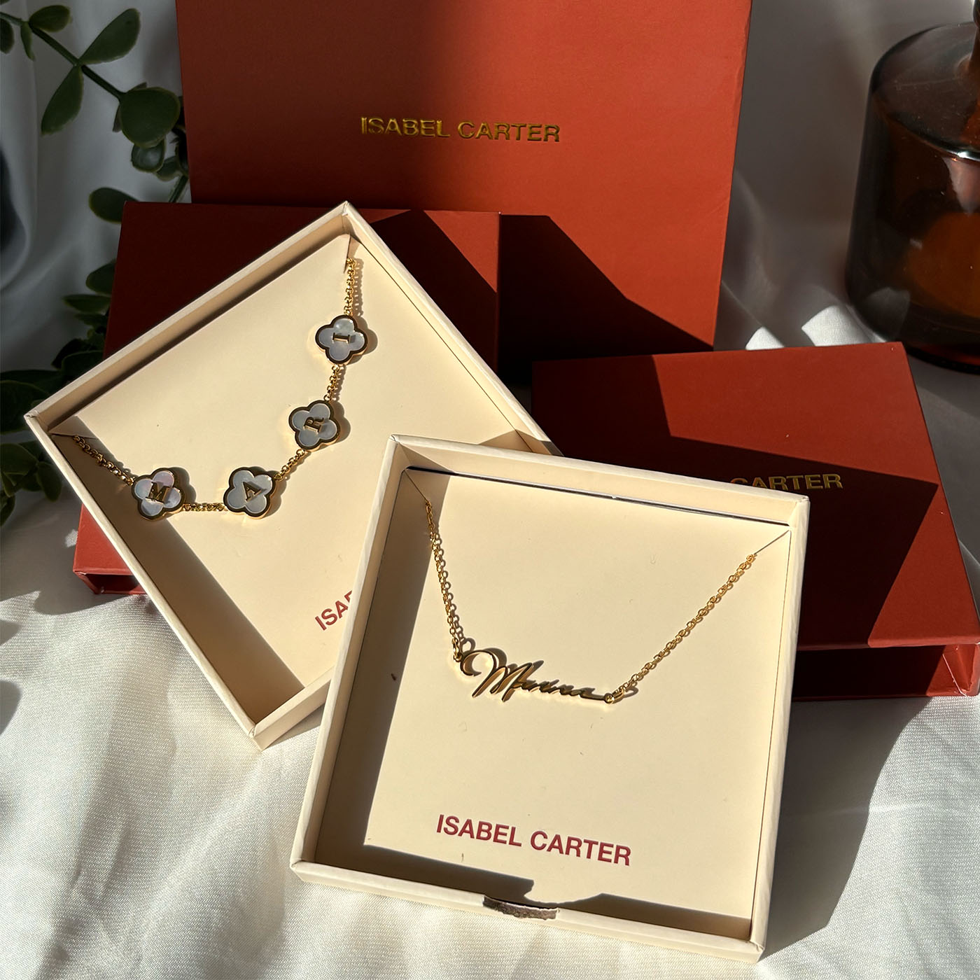 Our gold jewellery is coated in 18K PVD (Physical Vapour Deposition) plating. This advanced technique creates a richer tone and a far more durable finish than traditional gold plating. Our silver pieces use the same stainless steel base, polished to a cool, luminous shine.